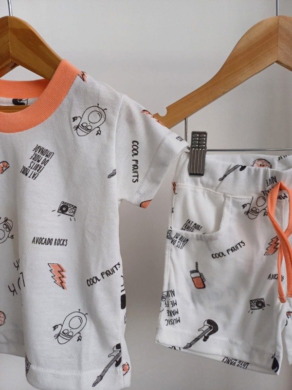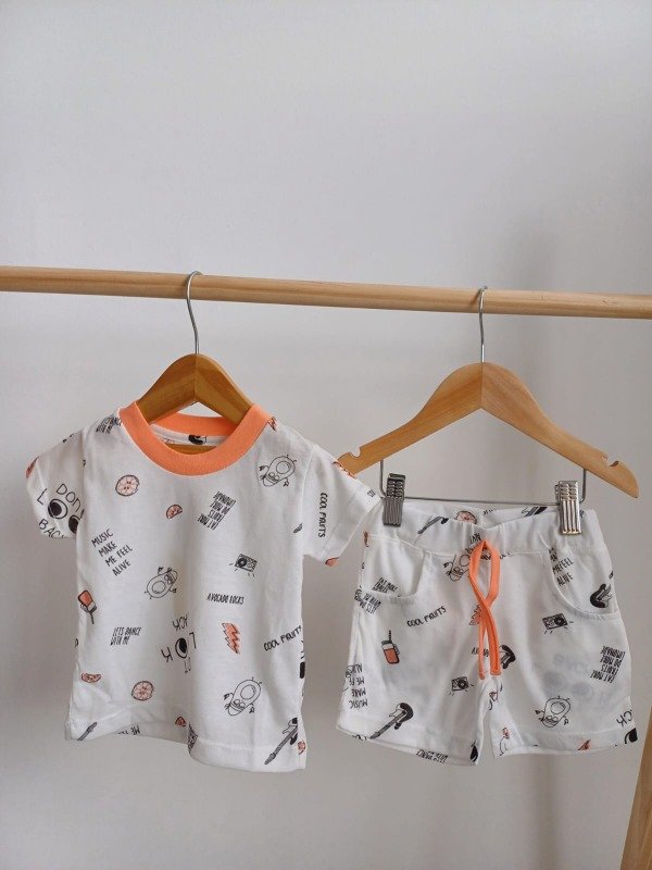 Conjunto de dos piezas con estampado de ojitos con remera y short