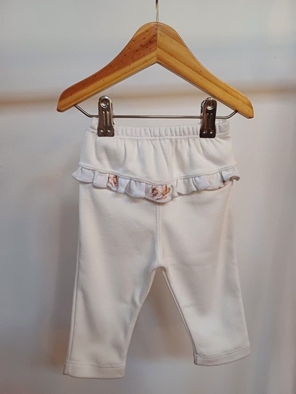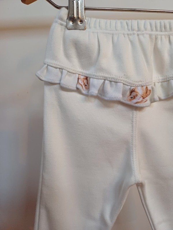 Pantalon 100% algodon con detalle de volados y estampado de conejitos