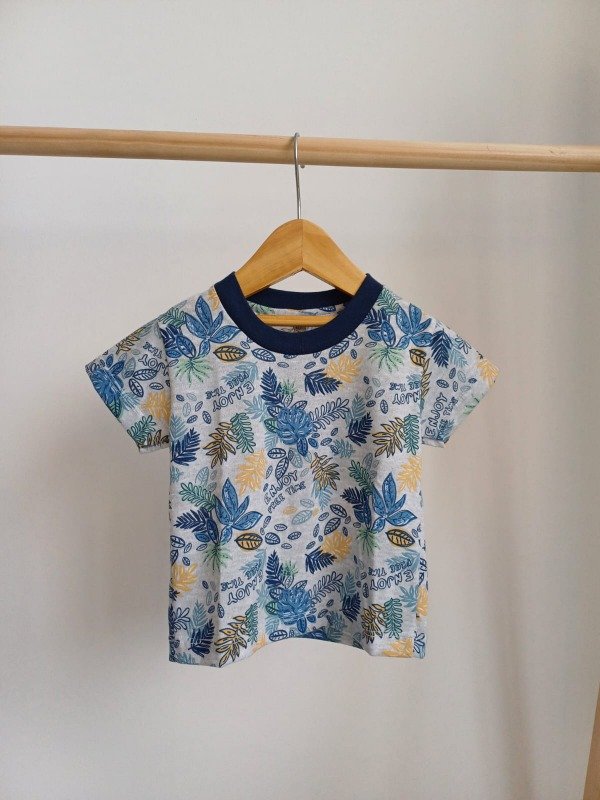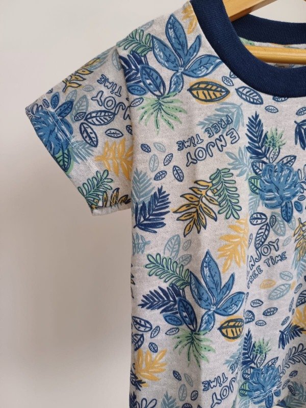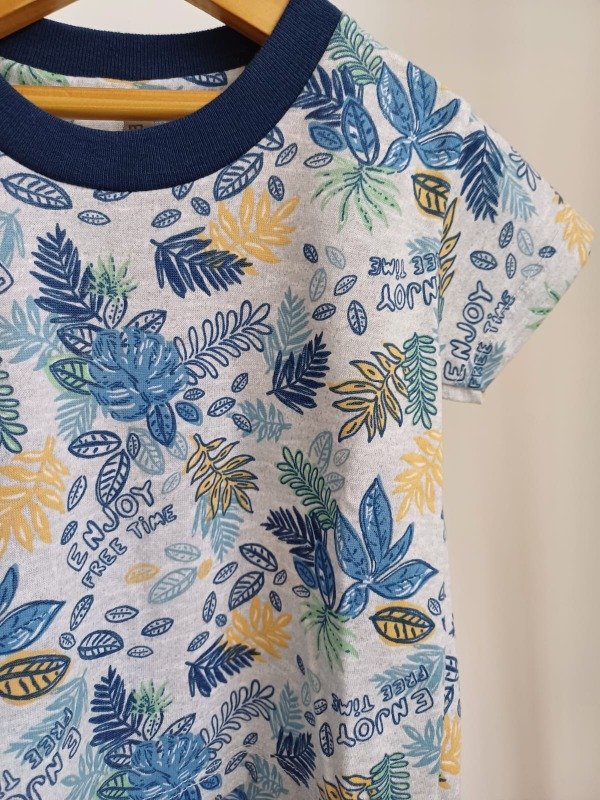 Remera estapada de hojitas 100% algodon con cuello en reef