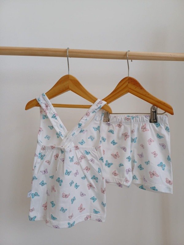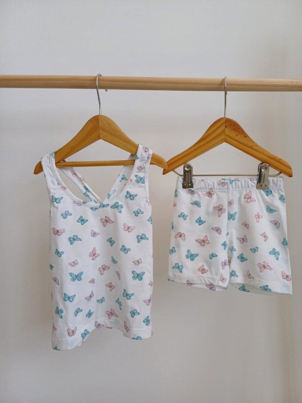 Conjunto de dos piezas con biker y musculosa, detalles en espalda y brillitos en la estampa