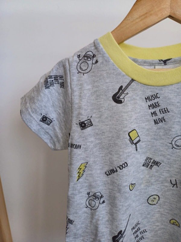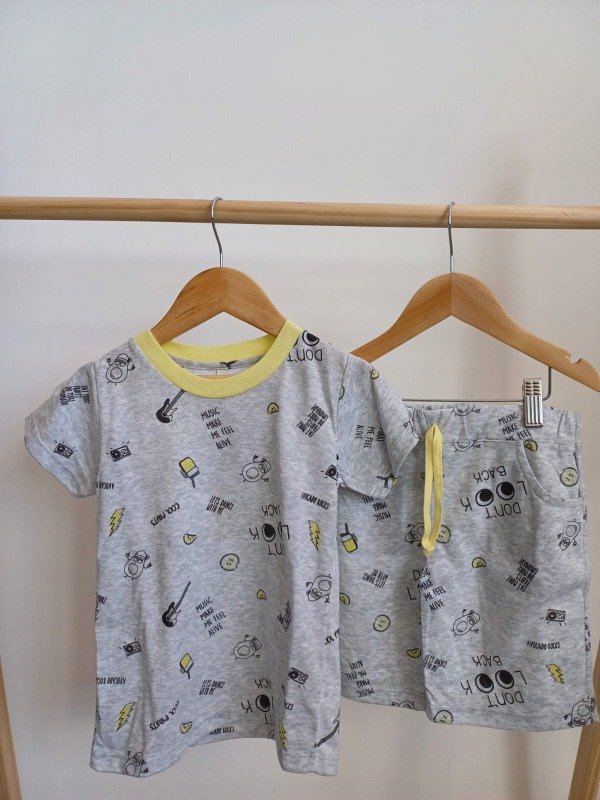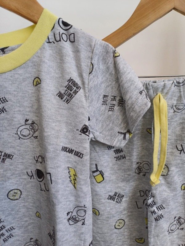 Pijama 100% algodon con estampado de ojitos color gris