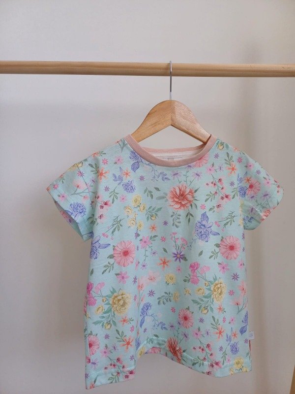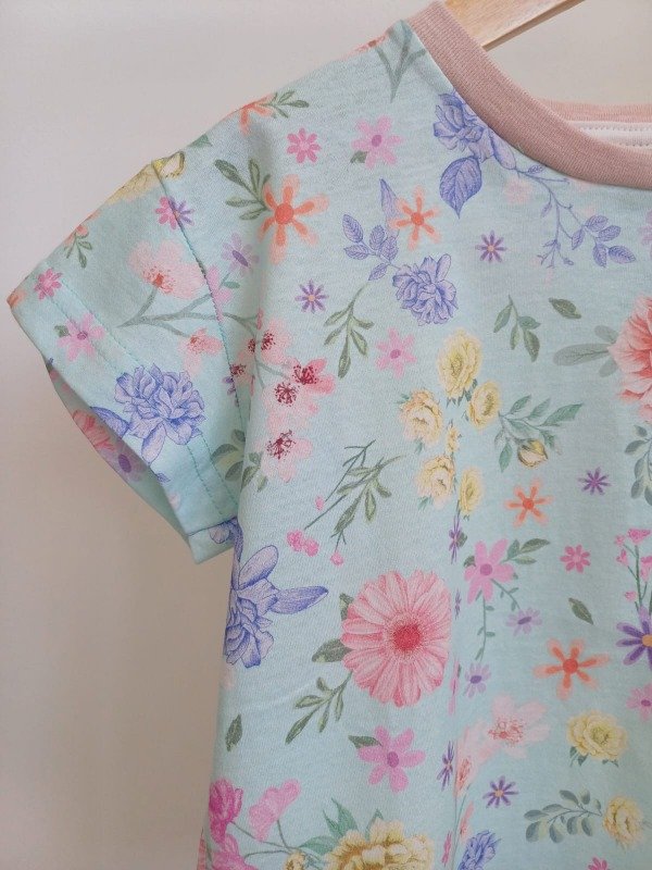 Remera 100% algodon con estampa de flores y detalle de cuello en reef