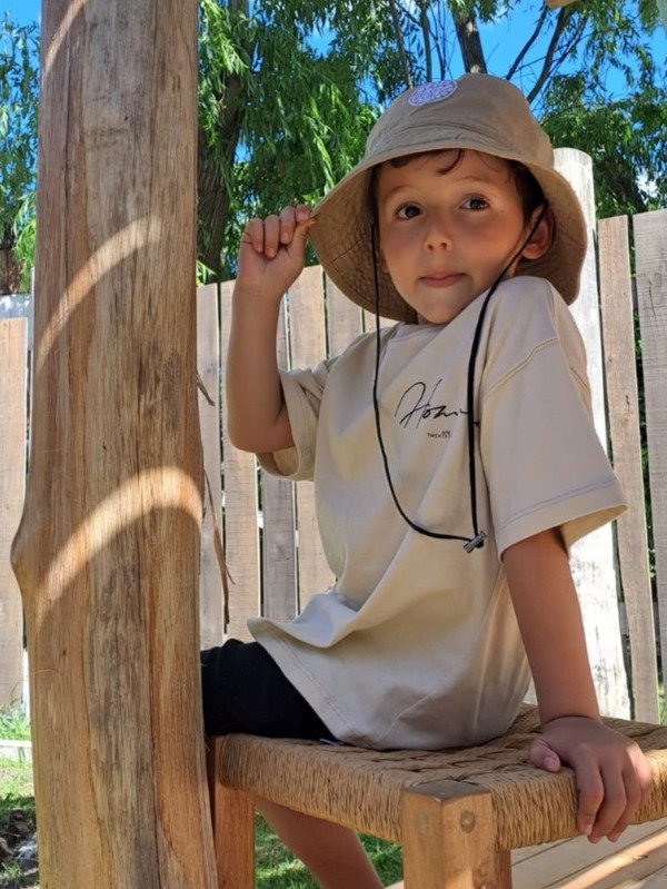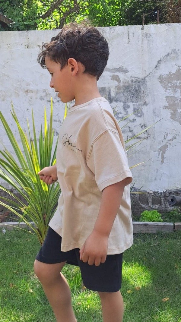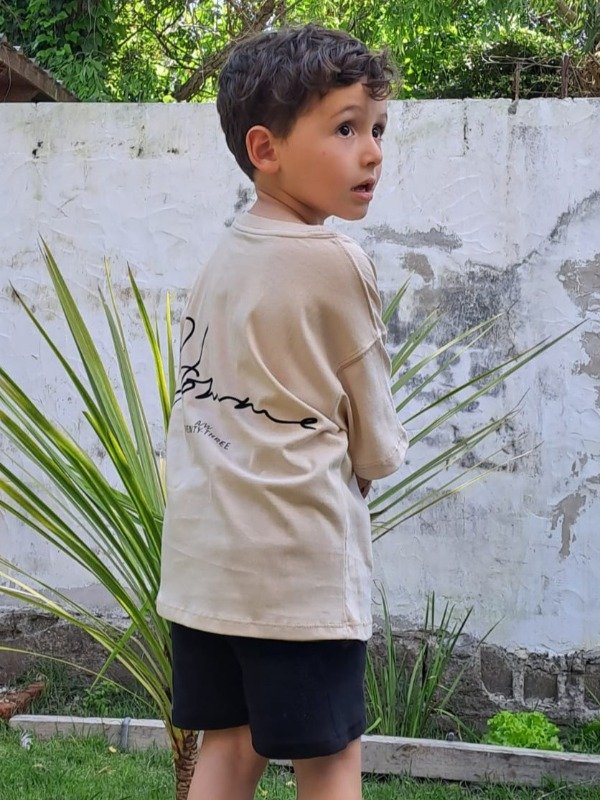 Remera manga corta oversize 100% algodon, color beige con estampa en espalda y cuello en reef