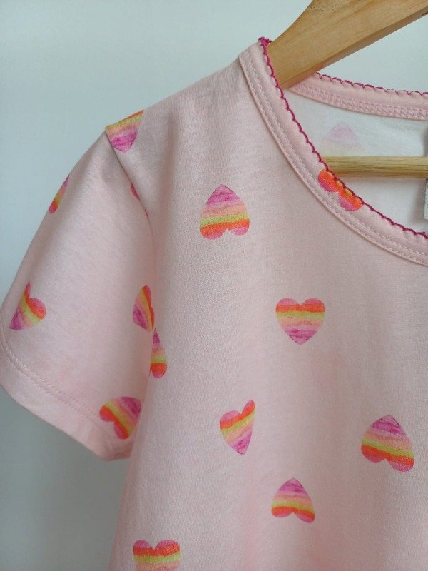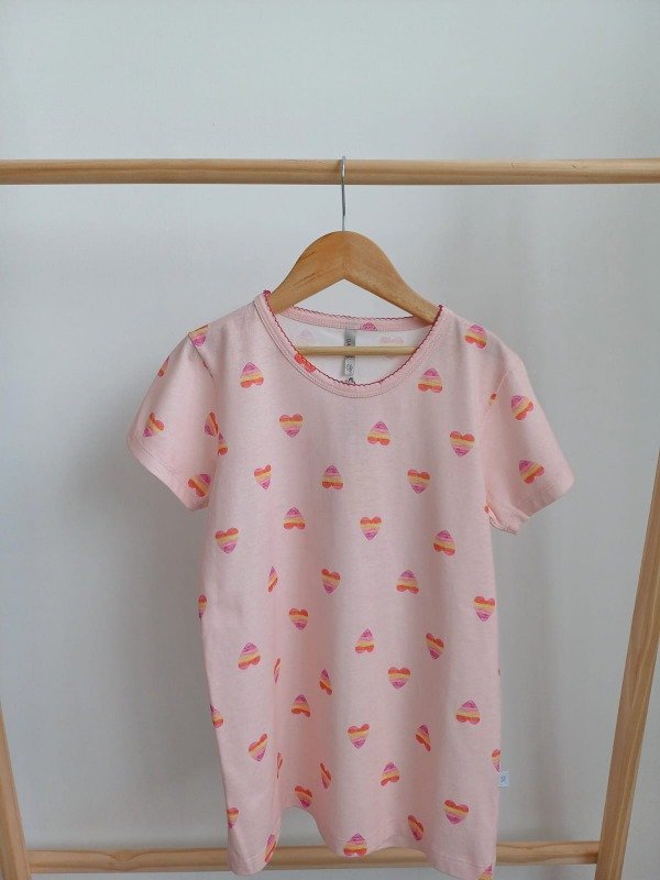 Remera 100% algodon con estampa de corazon y terminaciones en picot