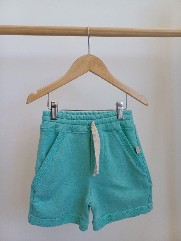 Bermuda rustica 100% algodon color aqua con cintura elastizada y cordon regulable
