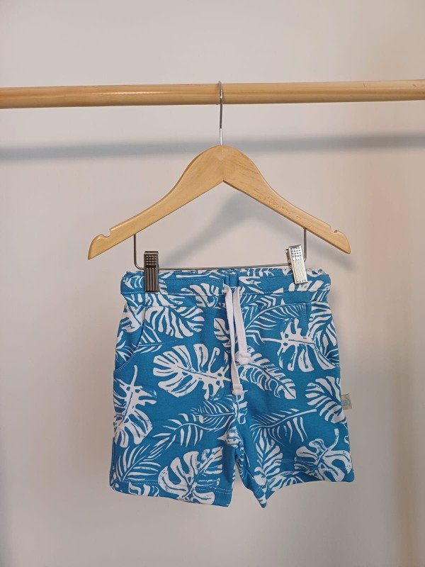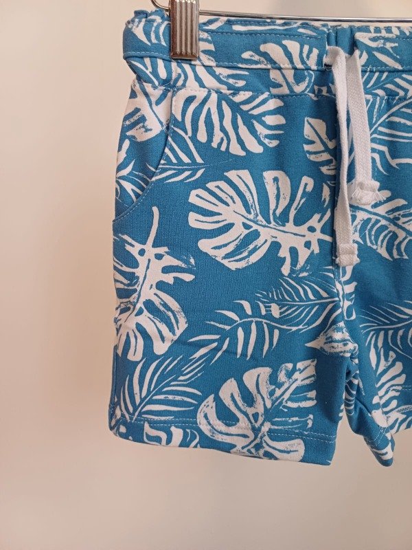 Bermuda de algodon rustico con estampa de hojas, con elastico, bolsillo y cordon en cintura