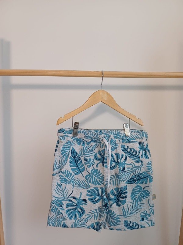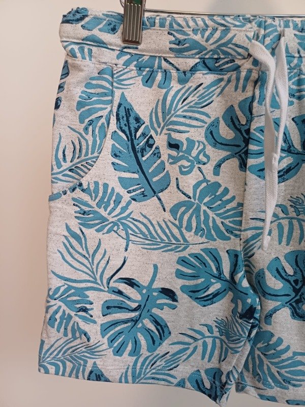 Bermuda de algodon rustico con estampa de hojas, con elastico, bolsillo y cordon en cintura