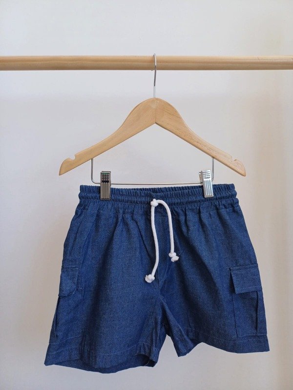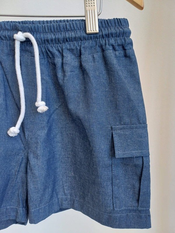 Bermuda cargo de jean camisero con cintura elastizada y cordon regulable