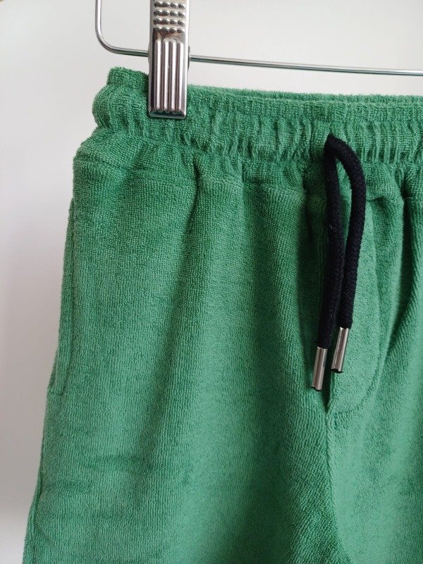 Bermuda de towel color verde con cintura elastizada, cordon regulable y bolsillos