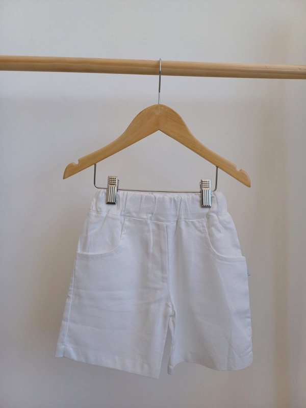 Bermuda de lino color blanca sin boton con elastico en cintura