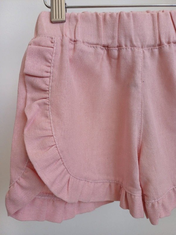 Short de lino color rosa con elastico en cintura y detalles de volados