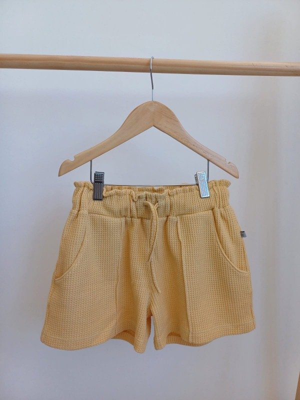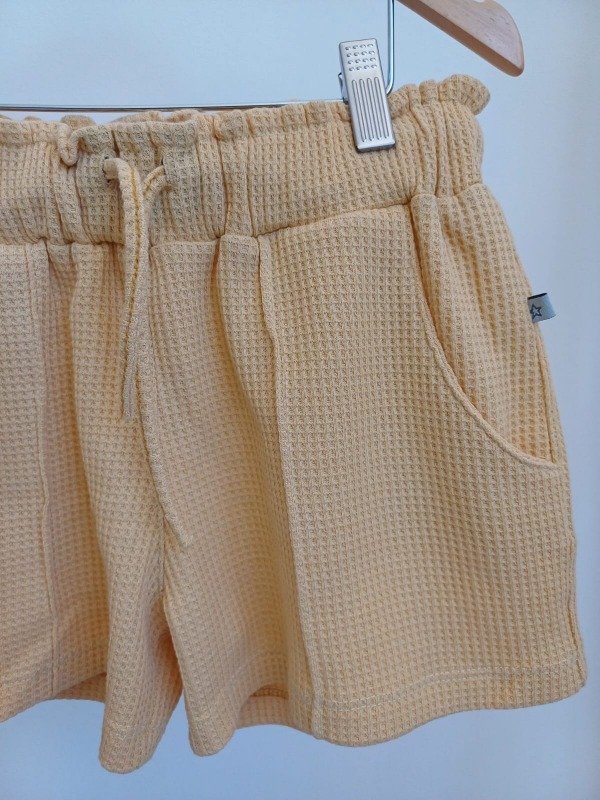 Short de panal color maiz con cintura elastizada, cordon regulable y bolsillos