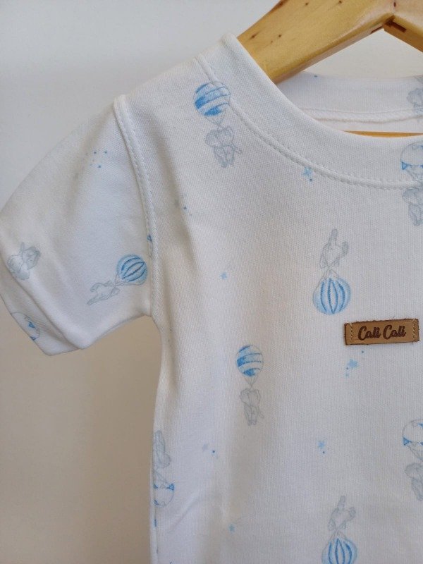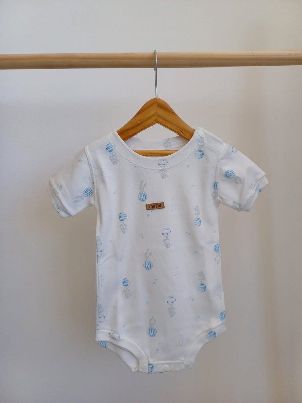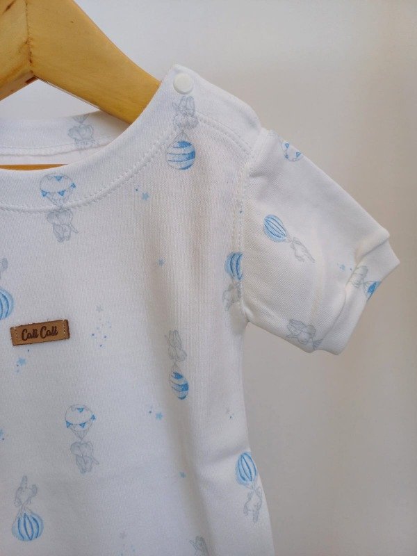 Body manga corta 100% algodon con estampa de elefantes, muy facil de combinar y con broche de plastico del mismo color que permite el facil cambiado del bebe