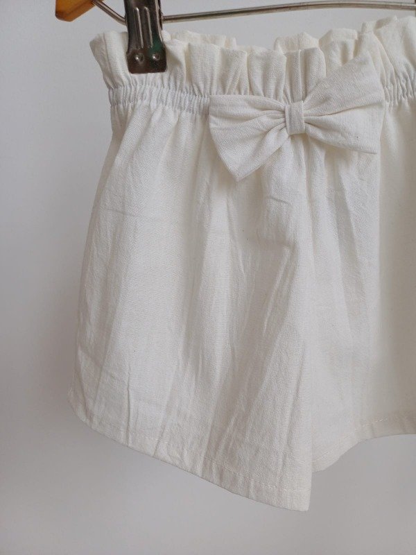 Short de tussor color natural con elastico en cintura y detalle de moño