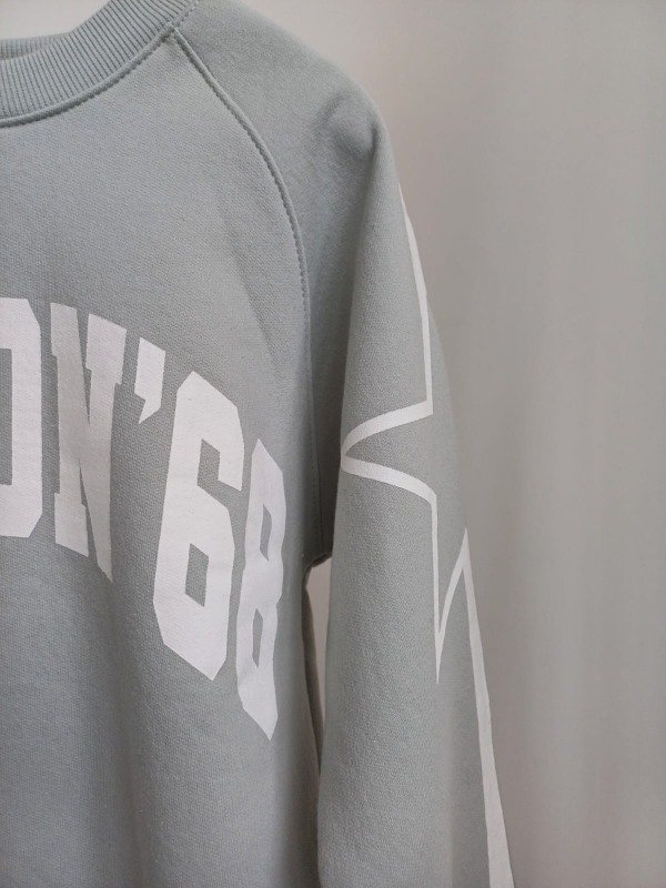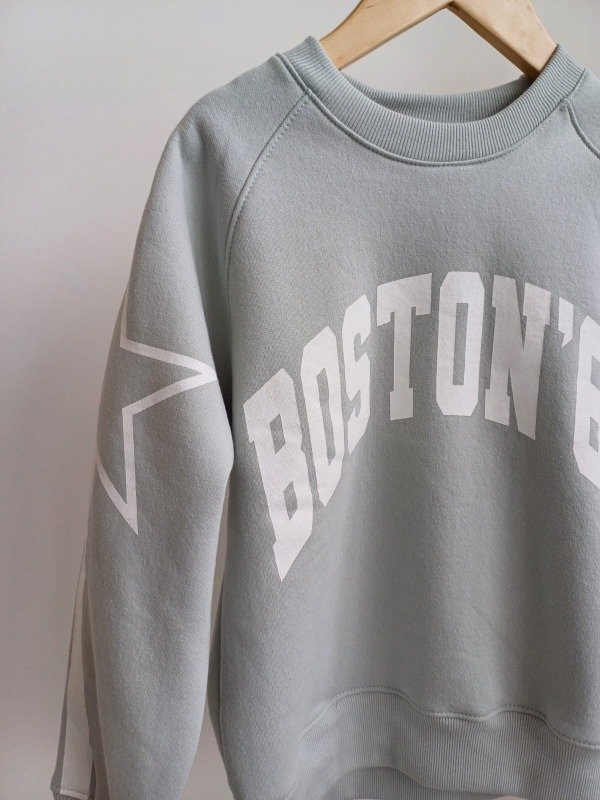 Buzo Boston color aqua con friza gamuzada y estampa por delante y en manga