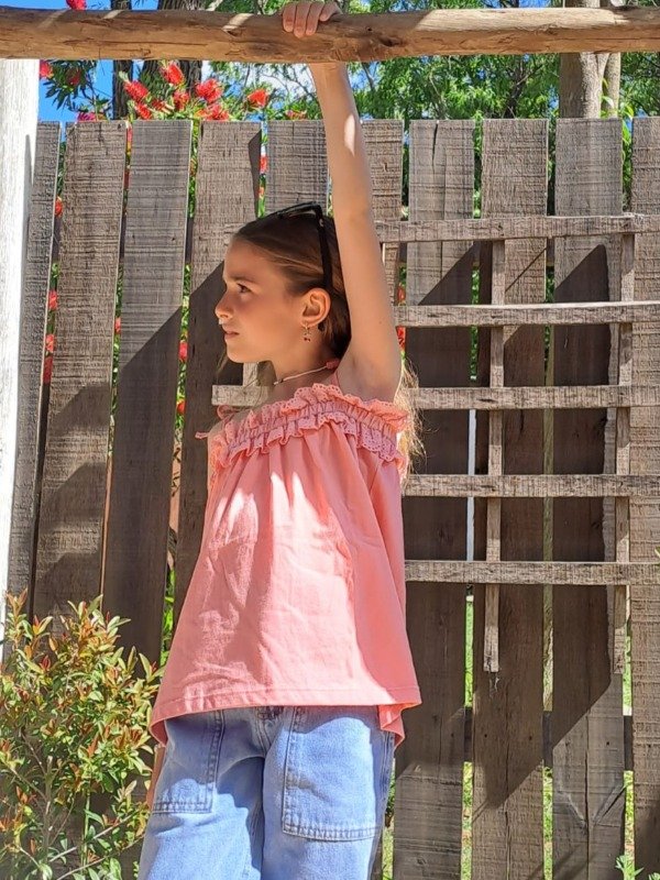 Muculosa de algodon con detalles en broderi y tiras regulables color coral